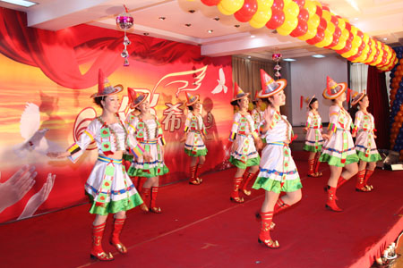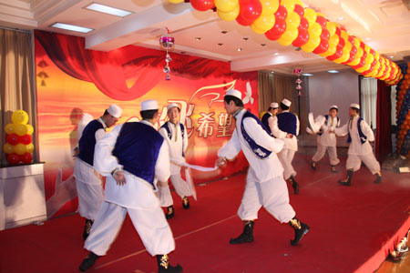 團拜會上,還為大家表演了精彩的文藝節(jié)目,這些節(jié)目都是由公司員工及員工子弟表演。