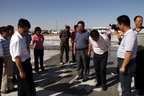 8月21日,由喬新山局長率領(lǐng)的民航西北管理局工作檢查組一行蒞臨金昌機(jī)場飛行區(qū)施工現(xiàn)場檢查指導(dǎo)工作。在飛行區(qū)停機(jī)坪建設(shè)工地,在了解到公司金昌機(jī)場項(xiàng)目部僅用了二十五個(gè)晝夜完成了總面積2.65萬平方米停機(jī)坪道面工程的情況后,對大家的辛勤勞動給予了充分肯定,并鼓勵(lì)廣大建設(shè)者繼續(xù)鼓足干勁、克服困難,發(fā)揚(yáng)求真務(wù)實(shí)、艱苦奮斗的作風(fēng),確保工程按期完工。