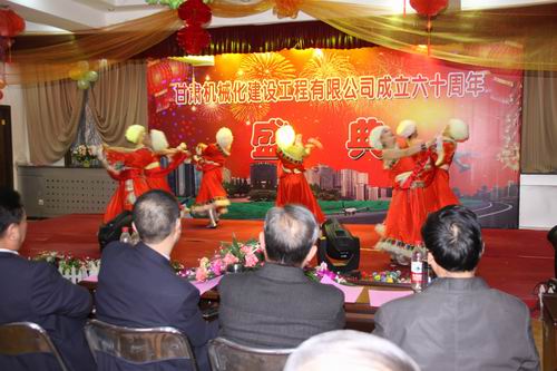 2013年3月22日下午兩點十分,甘肅機械化建設(shè)工程有限公司成立六十周年慶典大會在公司二樓大會議室舉行。公司領(lǐng)導(dǎo)、部分退休老領(lǐng)導(dǎo)、機關(guān)全體員工、各基層單位先進個人及代表出席大會。大會分兩個階段進行,公司黨委書記胡德生同志主持大會。大會第一階段,公司董事長陳想蕃先生向大會作慶典致辭,黨委書記胡德生同志作了重要講話。大會第二階段為公司文藝匯演,匯演共十二個節(jié)目,公司領(lǐng)導(dǎo)及員工歡聚一堂,表演精彩紛呈,現(xiàn)場氣氛非常熱烈,大會持續(xù)了近兩個小時。
