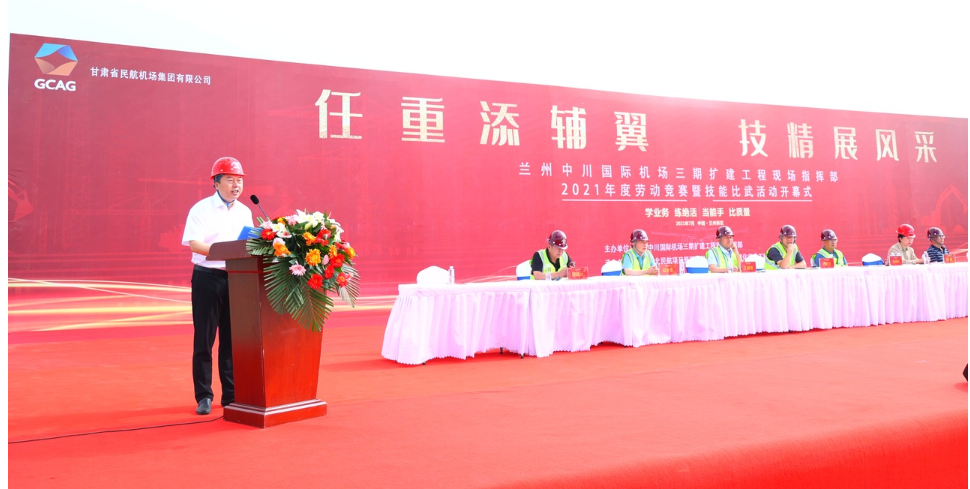 7月27日上午,由蘭州中川國(guó)際機(jī)場(chǎng)三期擴(kuò)建工程現(xiàn)場(chǎng)指揮部主辦,我司與西安西北民航項(xiàng)目管理有限公司承辦,為期兩天的蘭州中川國(guó)際機(jī)場(chǎng)三期擴(kuò)建工程2021年度“勞動(dòng)競(jìng)賽曁技能比武”活動(dòng)順利開幕。蒞臨開幕式的領(lǐng)導(dǎo)有蘭州市蘭州新區(qū)黨群部秦副部長(zhǎng)、蘭州市西固區(qū)總工會(huì)楊主席、蘭州中川國(guó)際機(jī)場(chǎng)三期擴(kuò)建工程現(xiàn)場(chǎng)指揮部黨委書記、指揮長(zhǎng),黨委副書記、常務(wù)副指揮長(zhǎng)等領(lǐng)導(dǎo),以及我司黨委書記、副總經(jīng)理和來自8家參賽單位的領(lǐng)導(dǎo)和參賽選手。