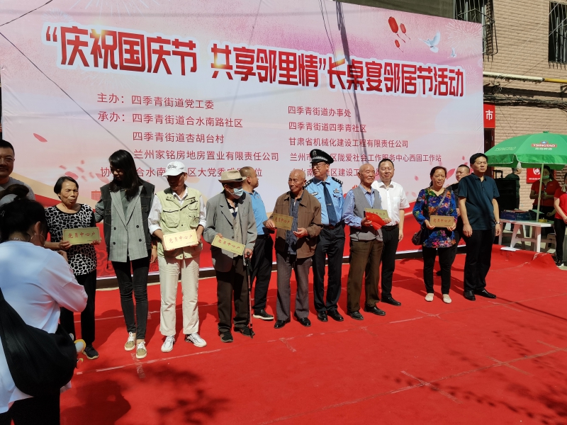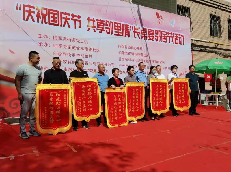 為弘揚鄰里互助的傳統(tǒng)美德,構(gòu)建“鄰里關(guān)愛、團(tuán)結(jié)互助、共創(chuàng)和諧”的新型鄰里關(guān)系,營造轄區(qū)居民積極參與社區(qū)文明創(chuàng)建的良好氛圍,喜迎“國慶”。近日,由四季青街道黨工委主辦“慶祝國慶節(jié)共享鄰里情” 長桌宴鄰居節(jié)活動在機械化家屬院隆重舉行。我司黨委書記、四季青街道等共計200余人參加了此次活動。