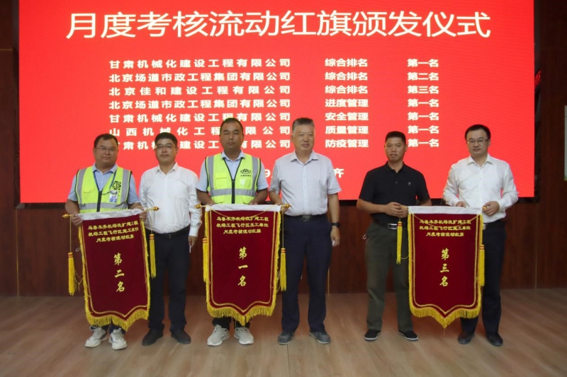 此次會議對施工單位八月份的相關(guān)工作進行了綜合考核,我司烏魯木齊機場項目經(jīng)理部在8家施工單位評比中獲得綜合第一名、安全第一名、防疫第一名的好成績,得到了業(yè)主方、擴建指揮部及監(jiān)理單位的一致認(rèn)可。同時會議對九月份全場飛行區(qū)工程的相關(guān)工作進行了部署,下達(dá)了各標(biāo)段施工任務(wù)。