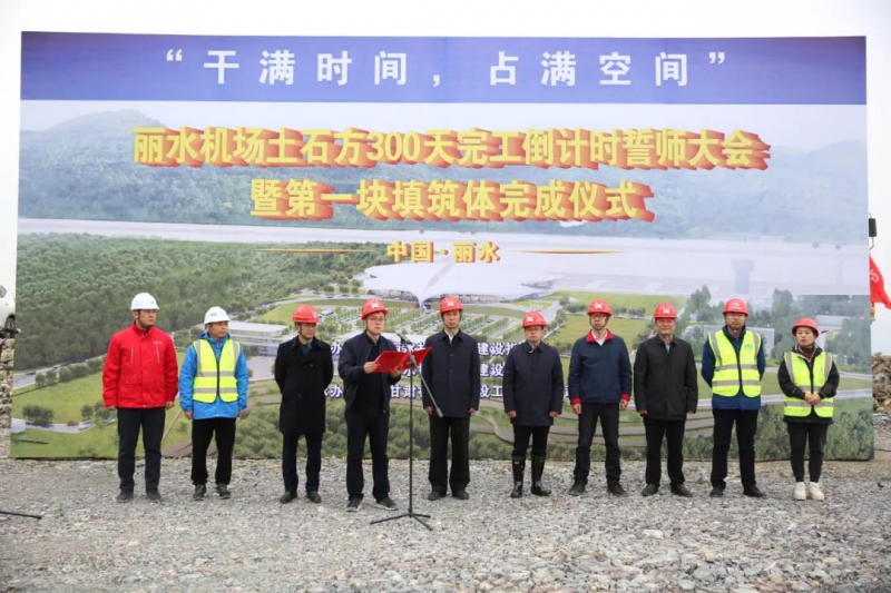 11月22日下午,麗水機(jī)場舉辦土石方300天完工倒計時誓師大會暨第一塊填筑體完成儀式。由我司承建的麗水機(jī)場(第一批)02標(biāo)段主體第一塊填筑體于本月順利完成 。