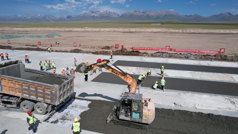 8月18日,隨著現(xiàn)場(chǎng)最后一車(chē)混凝土緩緩倒入倉(cāng)內(nèi),我公司承建的新疆和靜巴音布魯克機(jī)場(chǎng)跑道全線貫通。