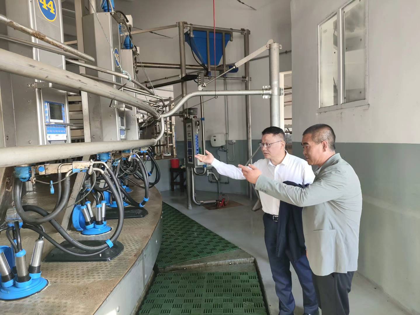 隨后羅世雄公使在候春暉場長的陪同下先后參觀了農場牛舍、正在運行的烘干爐以及從國內進口的50位轉盤式擠奶廳等設施設備。