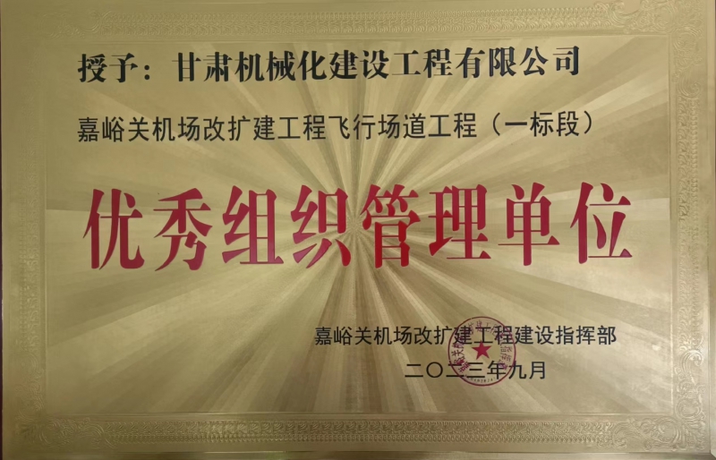 嘉峪關(guān)機(jī)場改擴(kuò)建工程飛行場道工程 (一標(biāo)段)優(yōu)秀組織管理單位